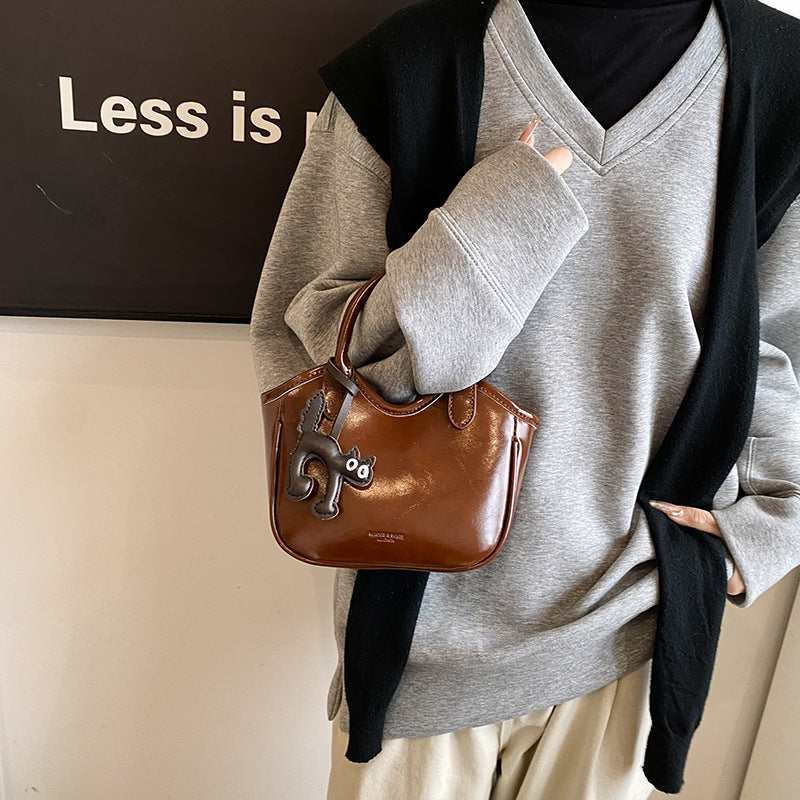 2025 autumn and winter new high-grade waxed leather basket bag handbag women's bag shoulder messenger bag
