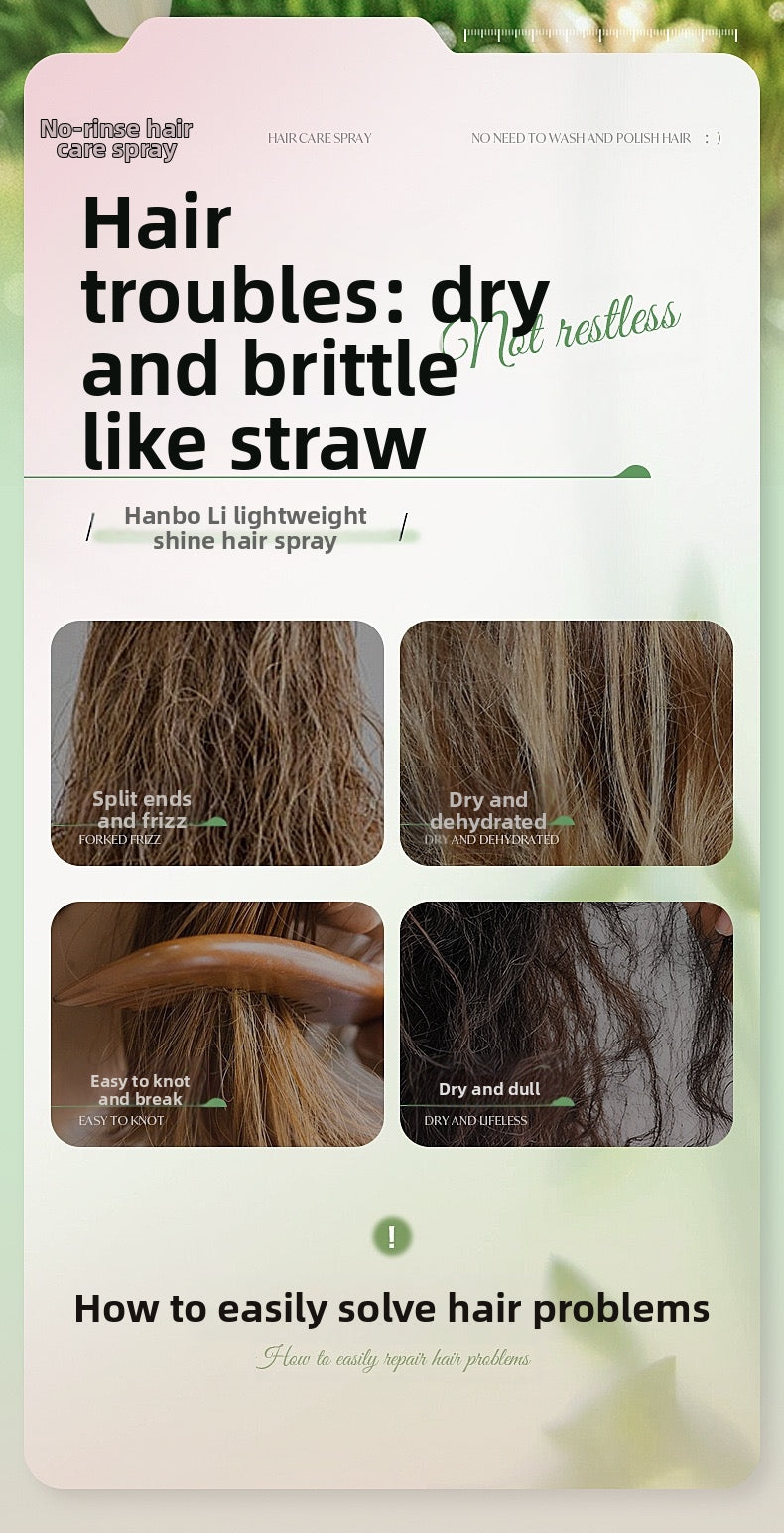 Light and shiny hair spray prevents dryness and frizz, refreshing and non-greasy, leaving a soft and fragrant hair care essential oil