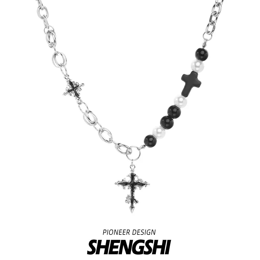 Cross-shaped titanium steel necklace with a sophisticated and edgy style NS006-X2752