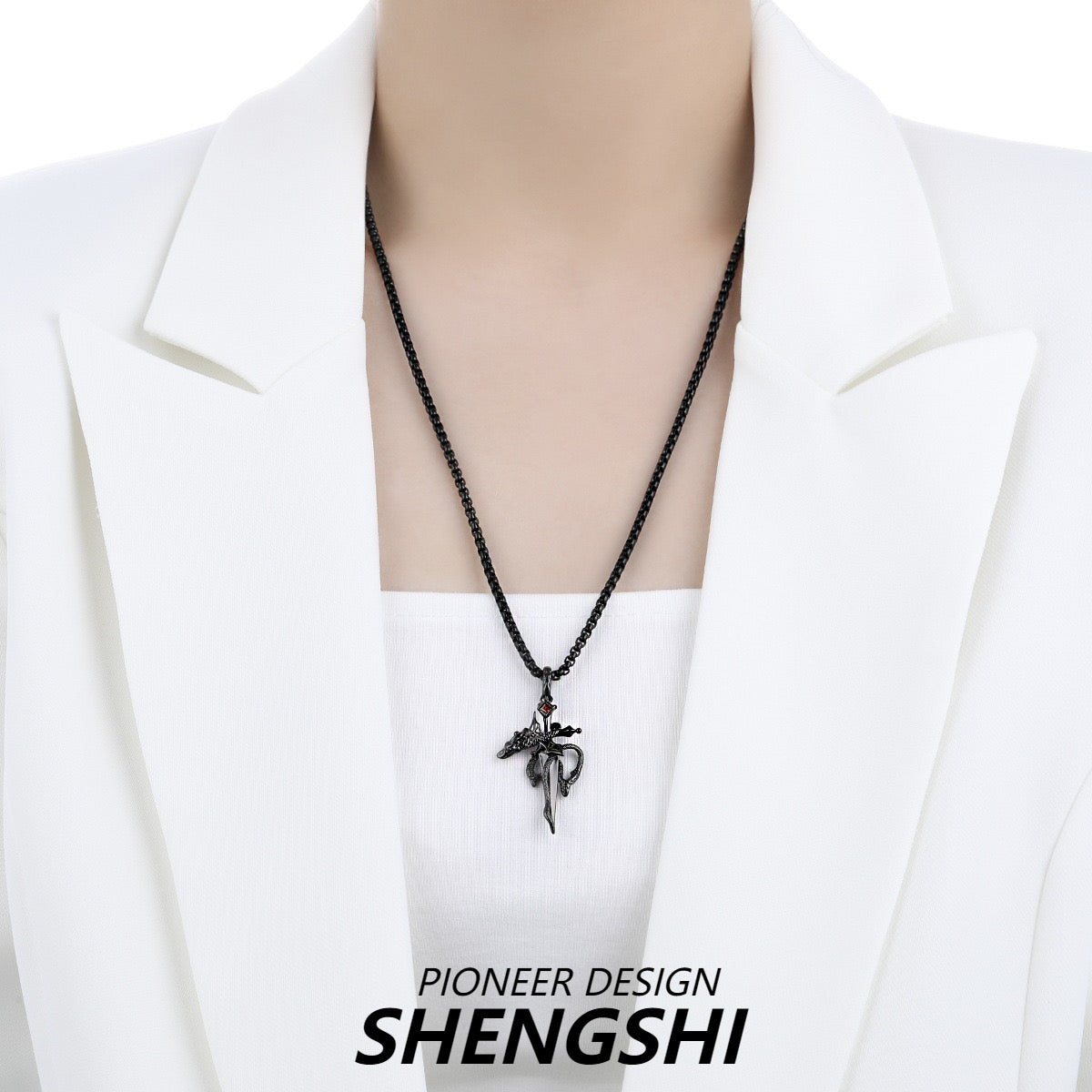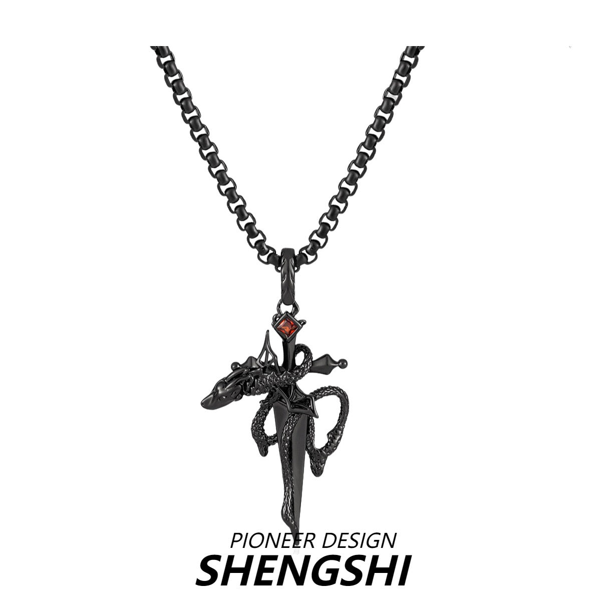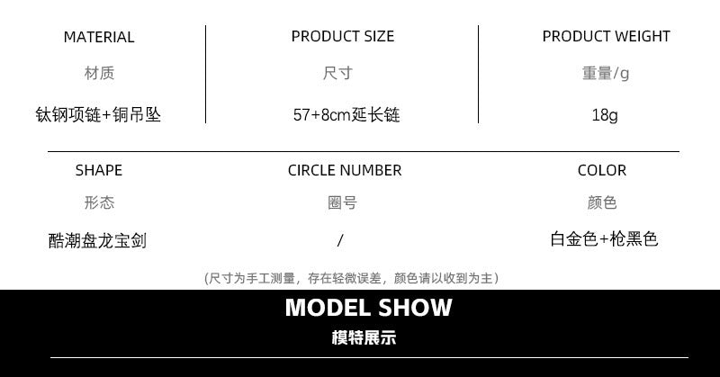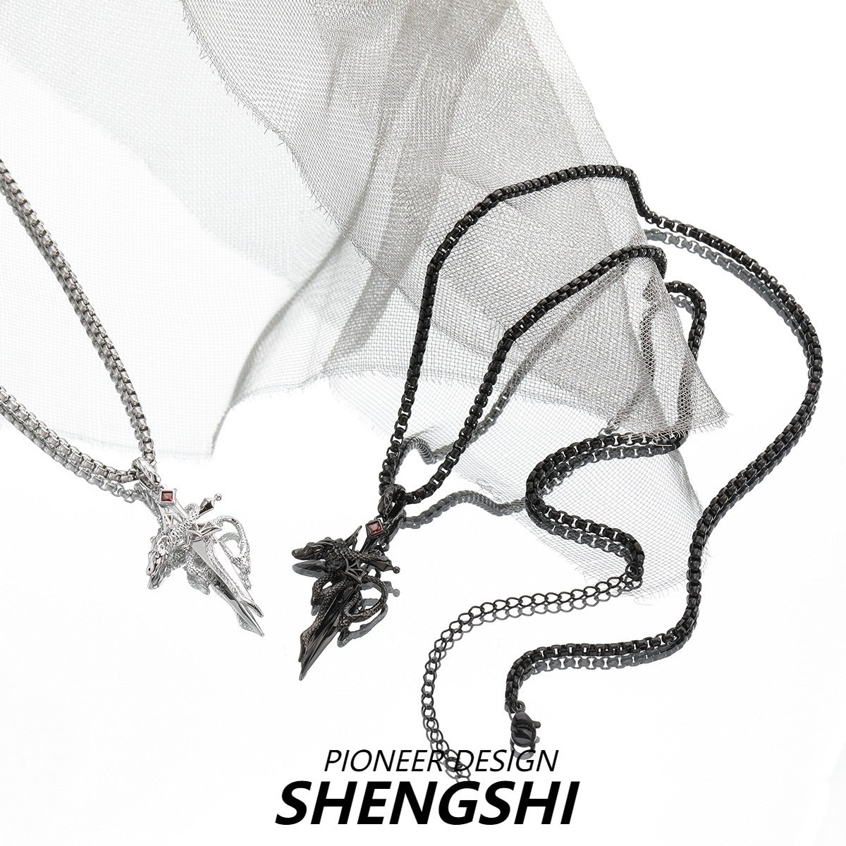 European and American hip-hop cross dragon necklace for women, titanium steel, no fading, niche design, dark style accessories