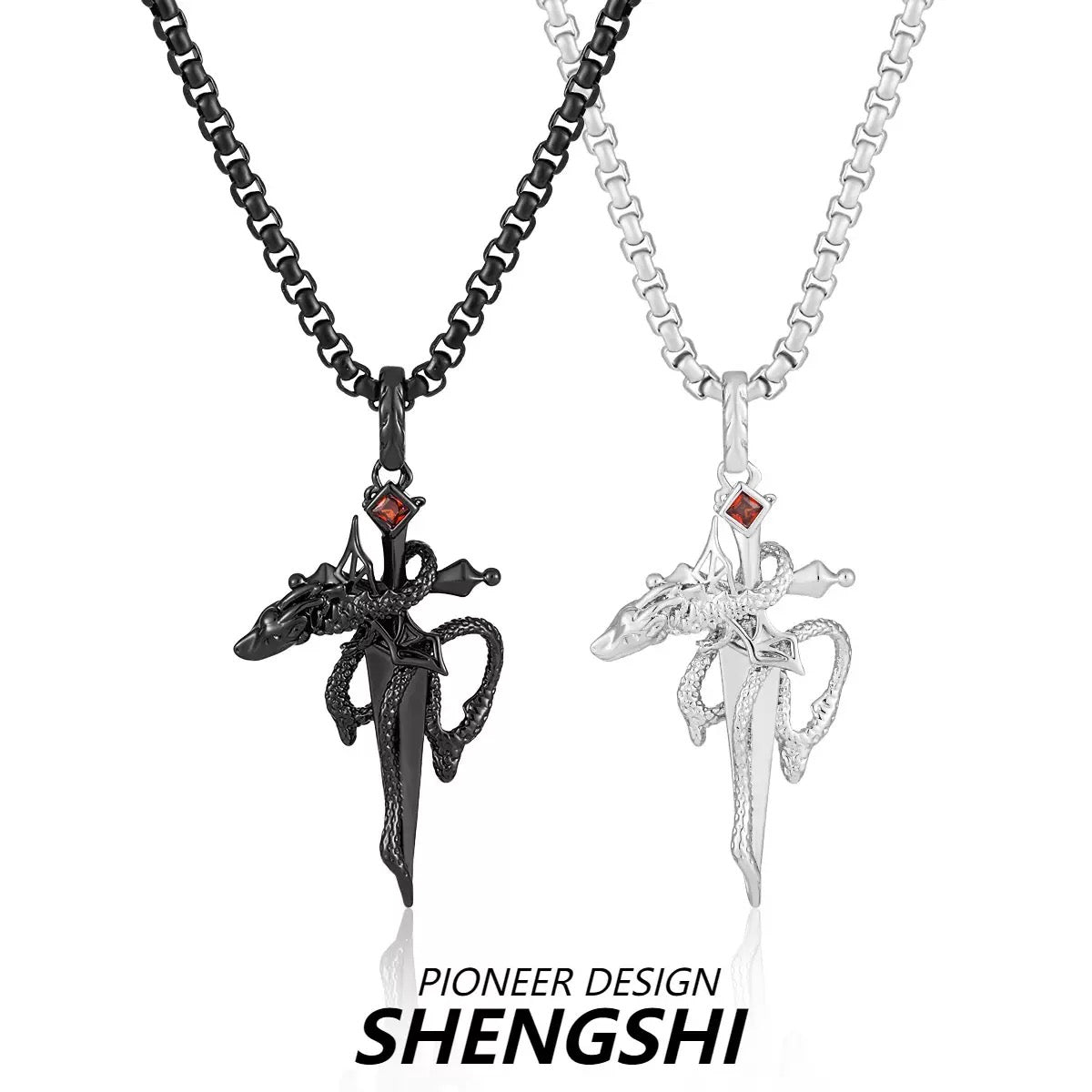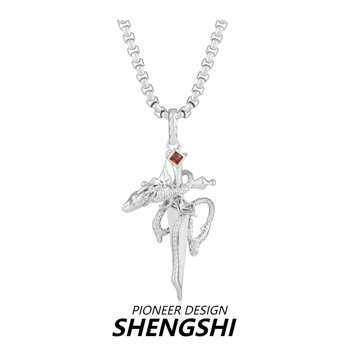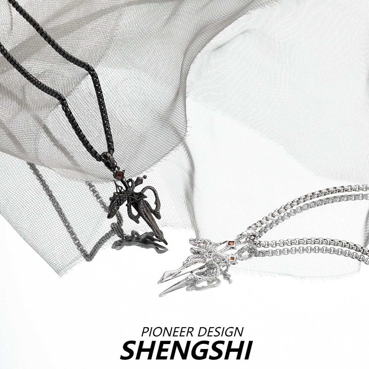European and American hip-hop cross dragon necklace for women, titanium steel, no fading, niche design, dark style accessories