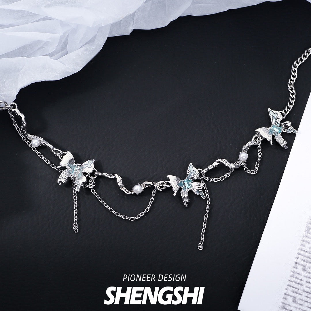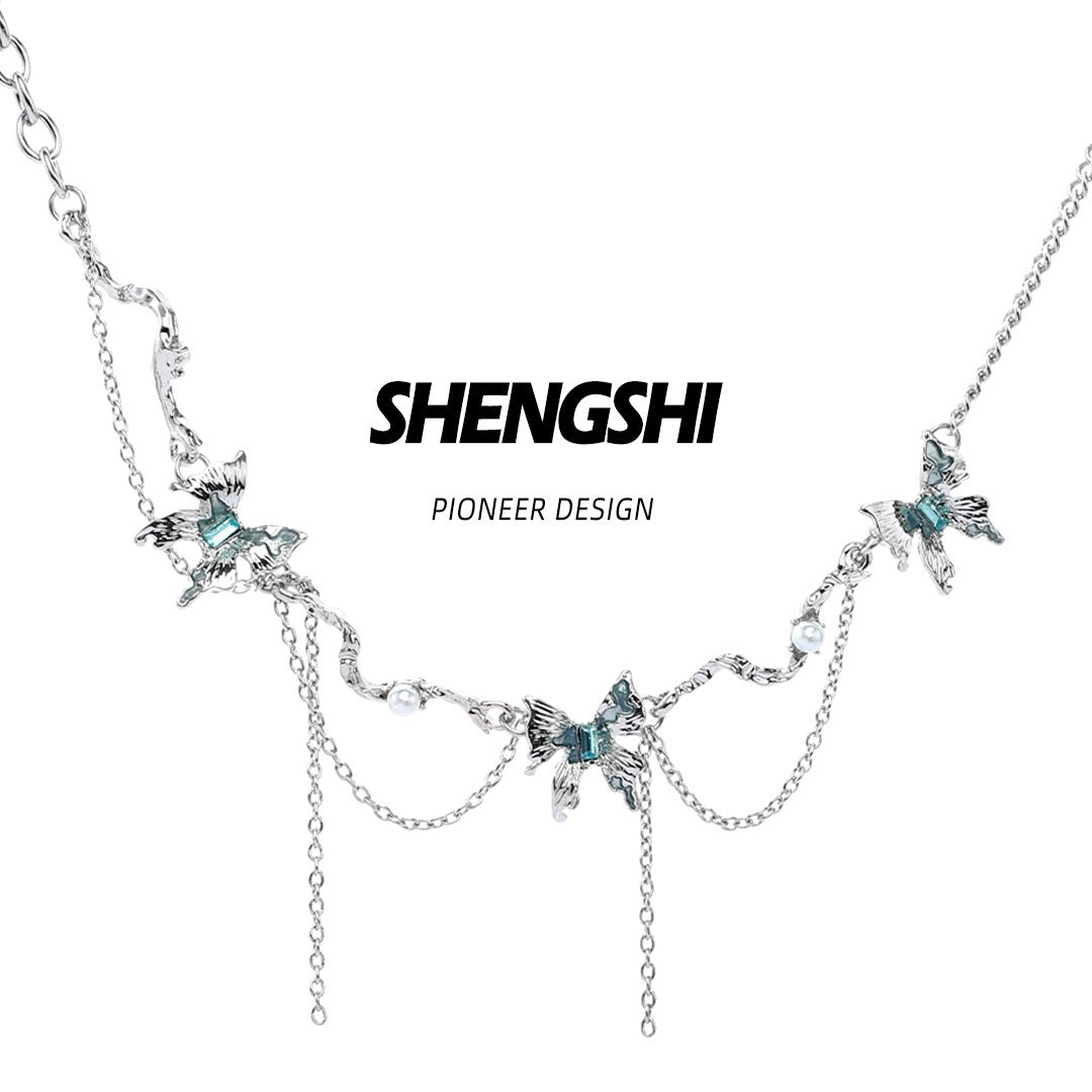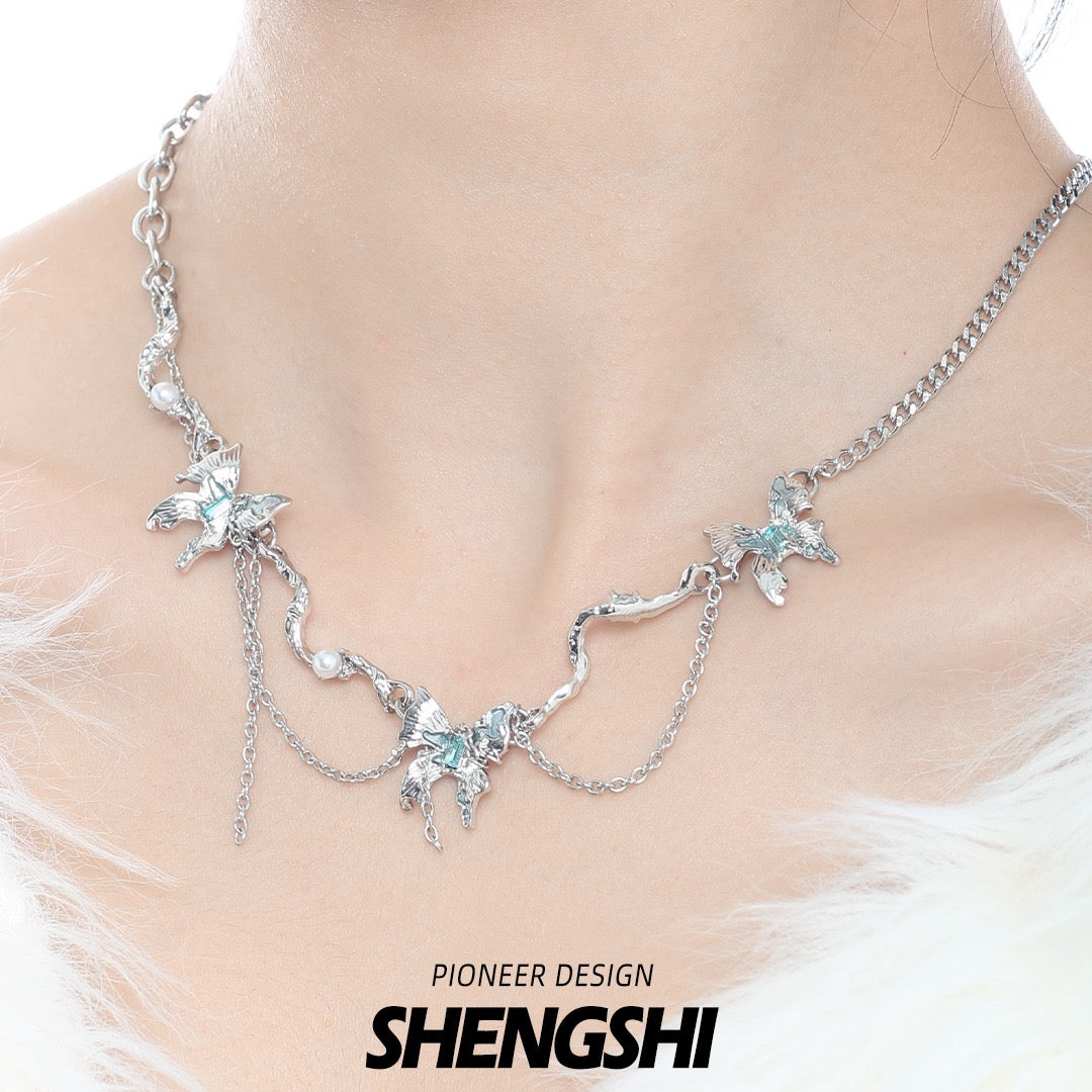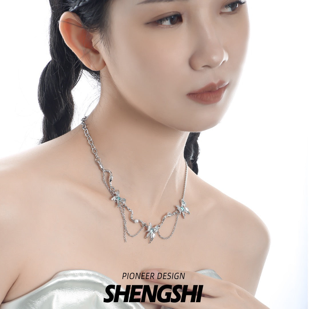 Glacier Butterfly Tassel Patchwork Necklace NS031-X2690