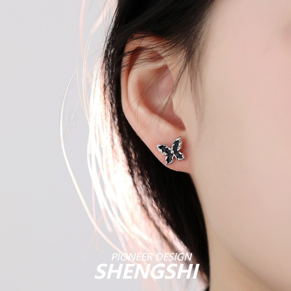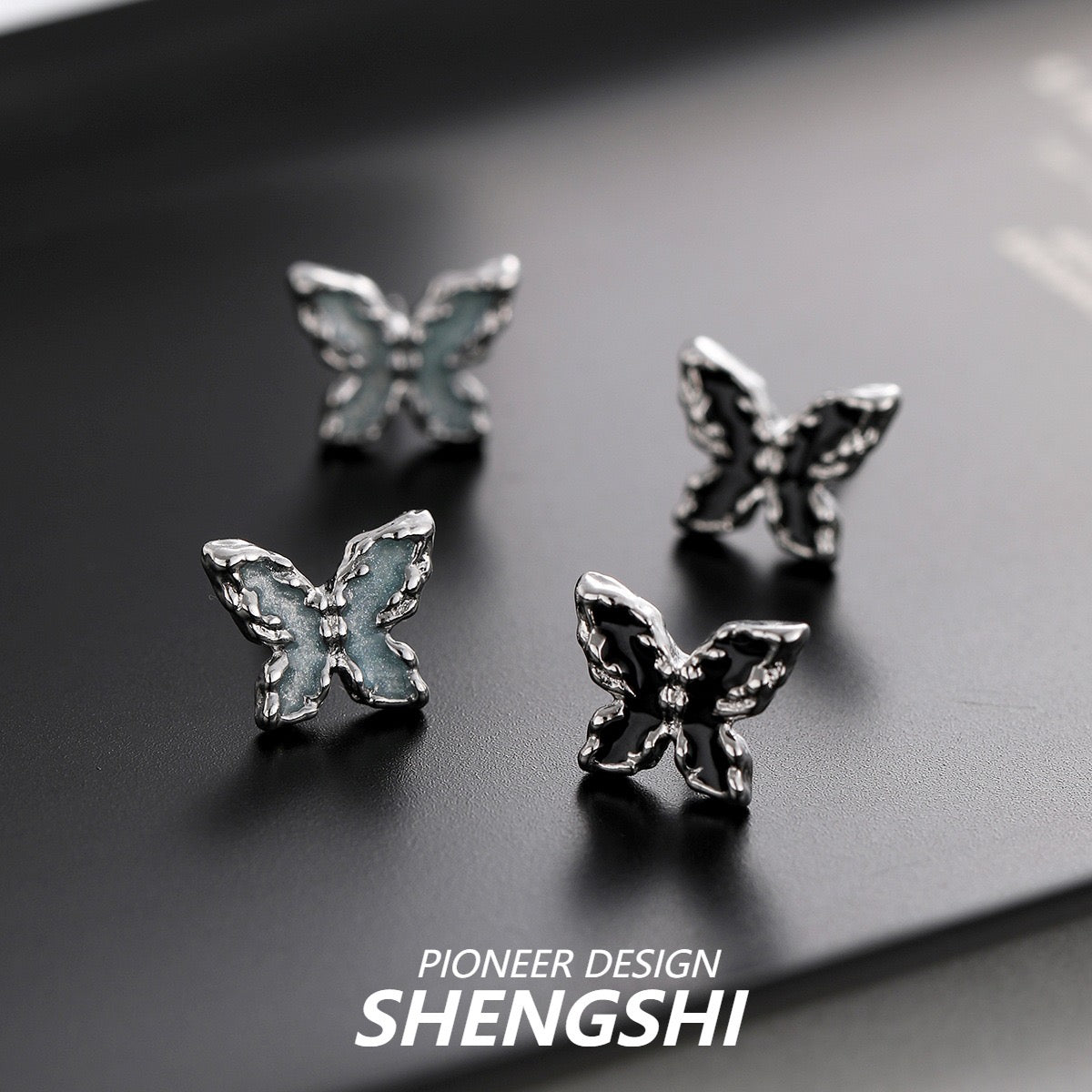 Shengshi's niche irregular, epoxied butterfly earrings offer a chic, Instagram-inspired look. These stylish, dark, and trendy earrings are perfect for women.
