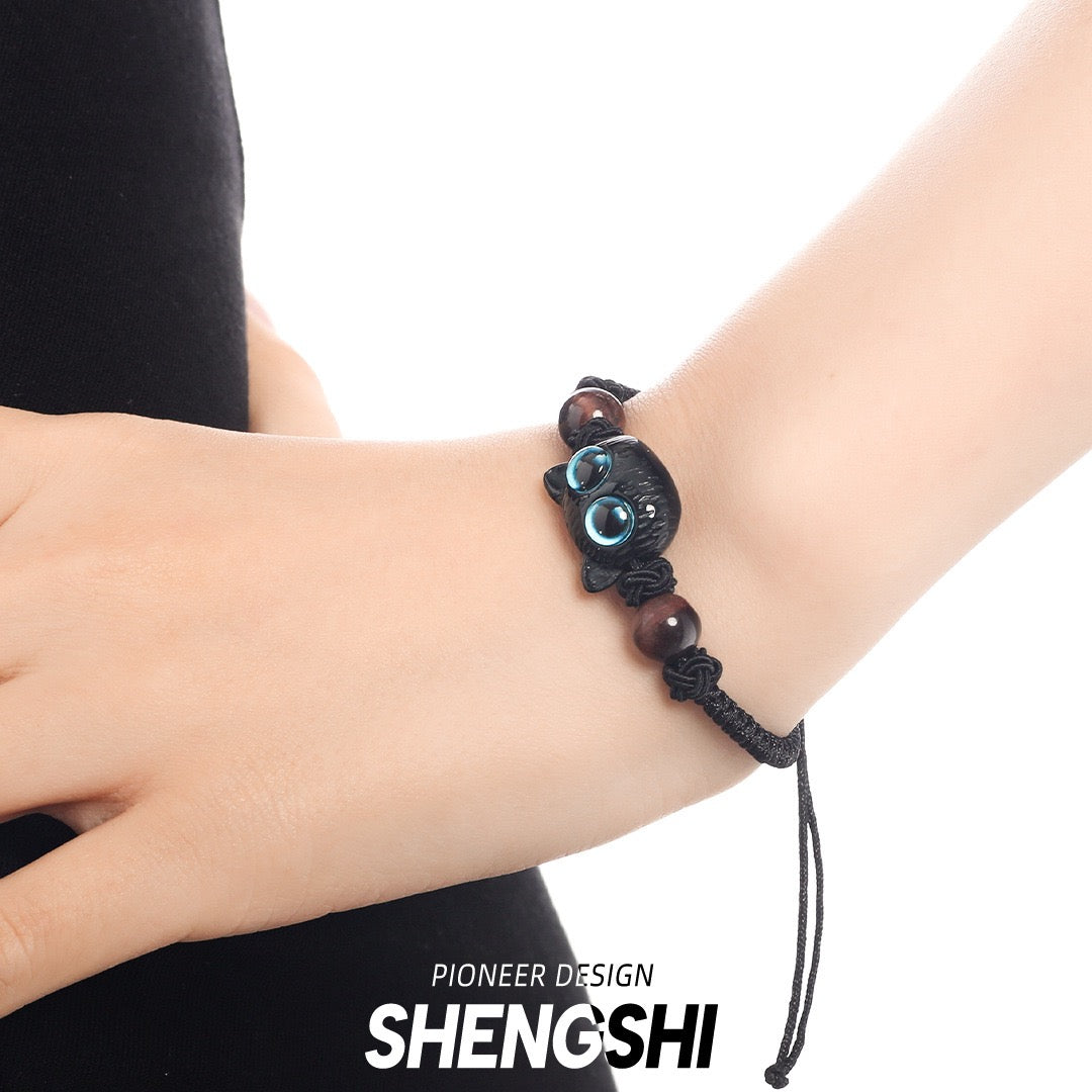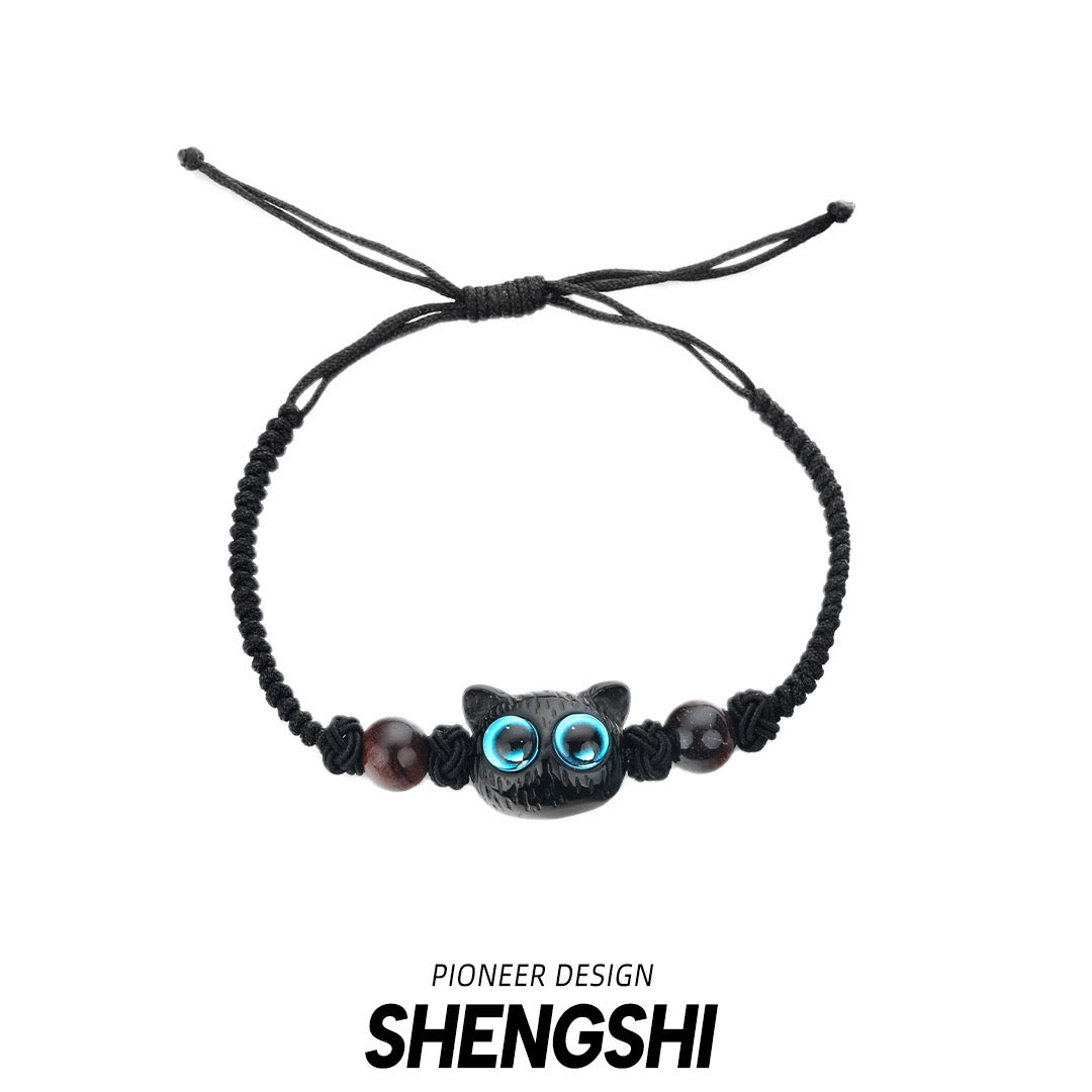 Niche Blue-Eyed Cat Braided Drawstring Bracelet NS038-S0530A