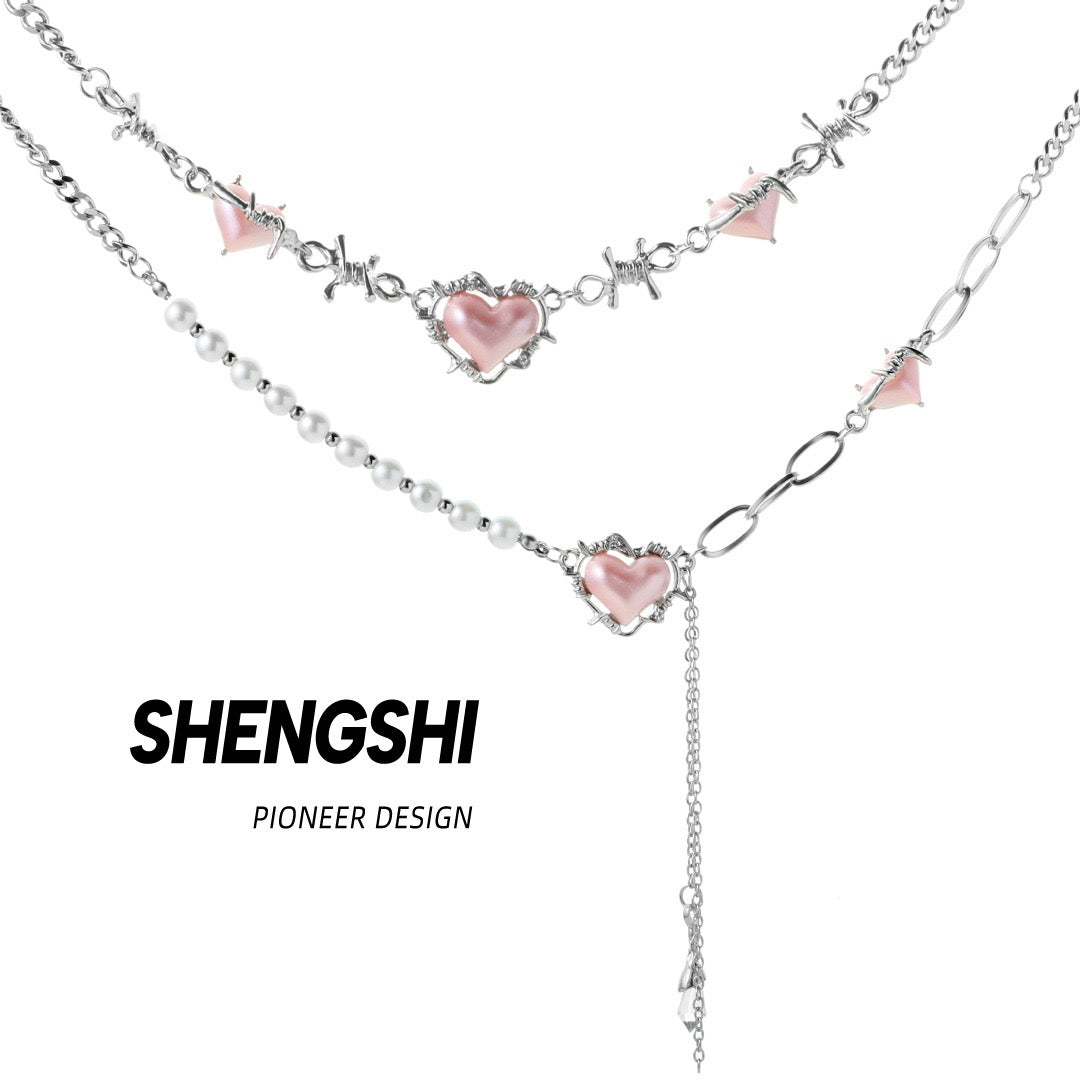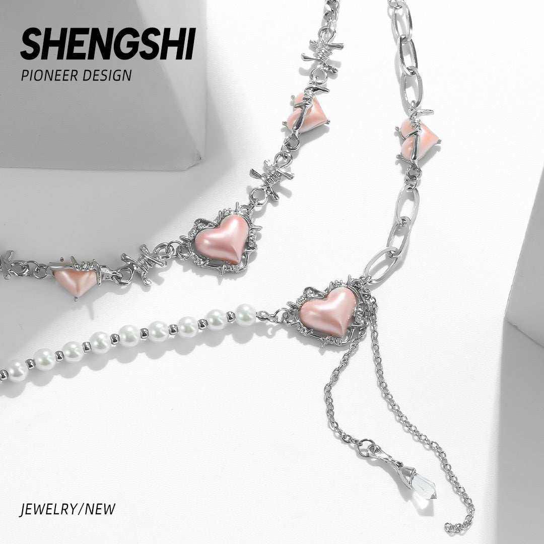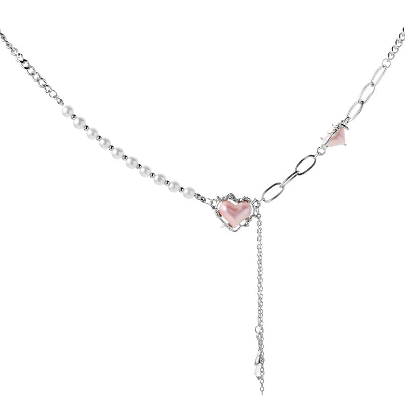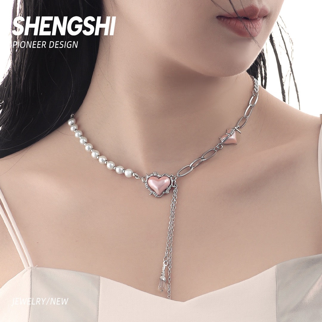 Niche design pink heart-shaped clavicle necklace NS062-X2564