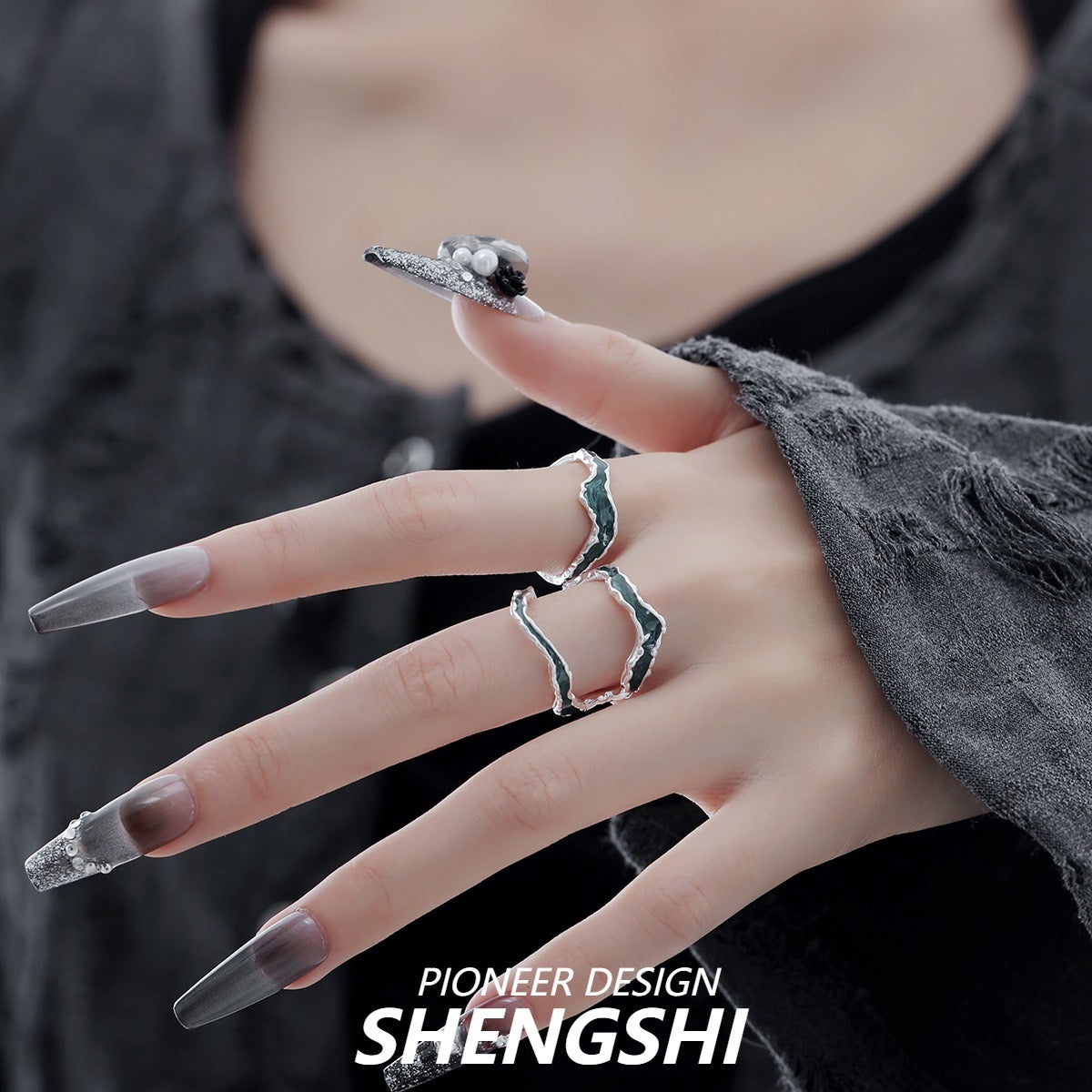 Original design, niche texture, river-embellished rubber index finger ring. Luxurious, adjustable, and stylish, this trendy ring is perfect for women.