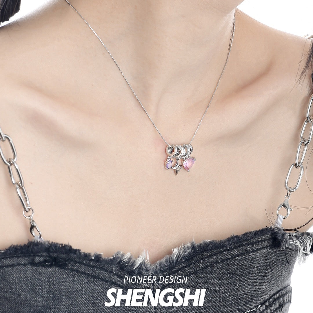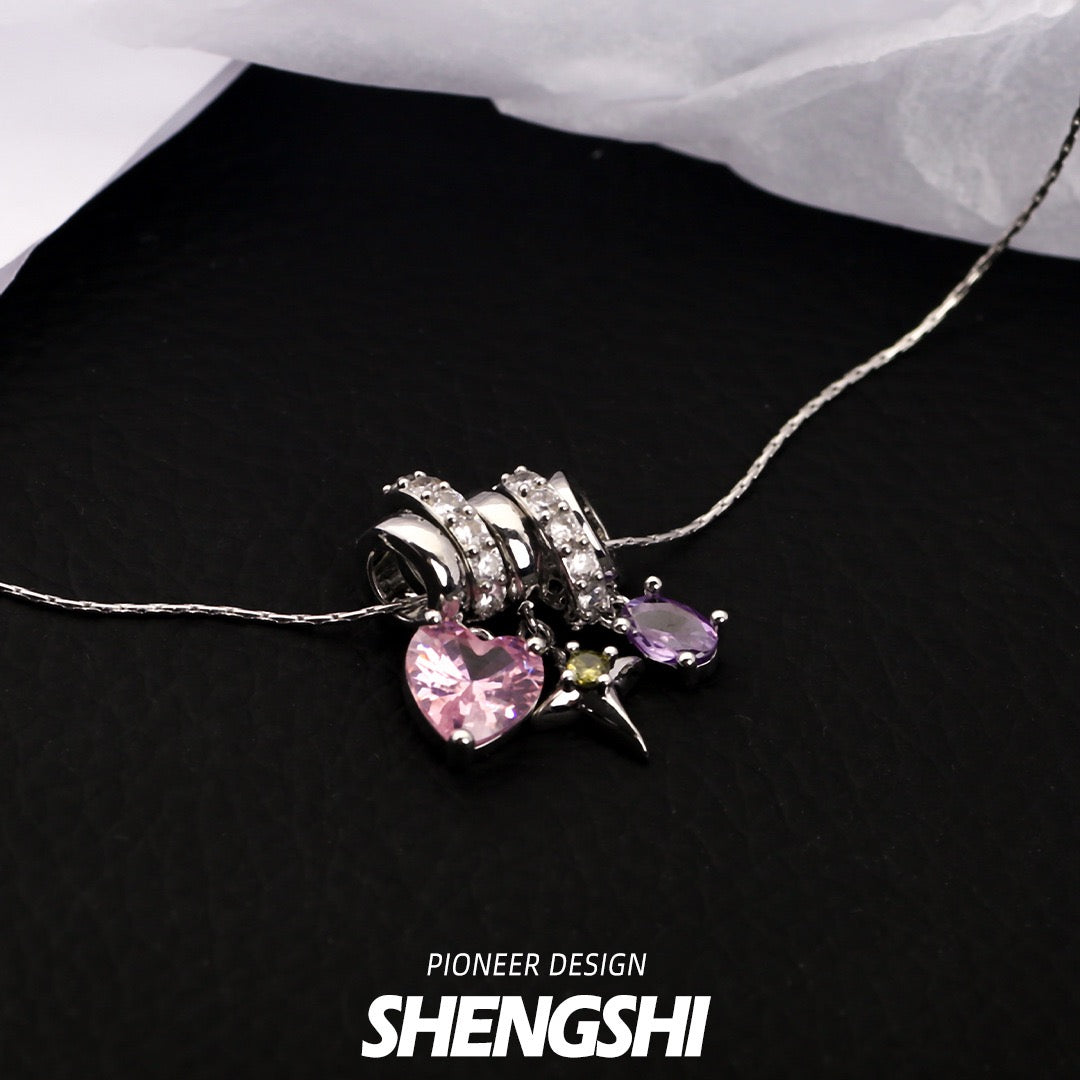 Original Personalized Heart-Shaped Starburst Diamond Pendant Necklace NS014-X2709