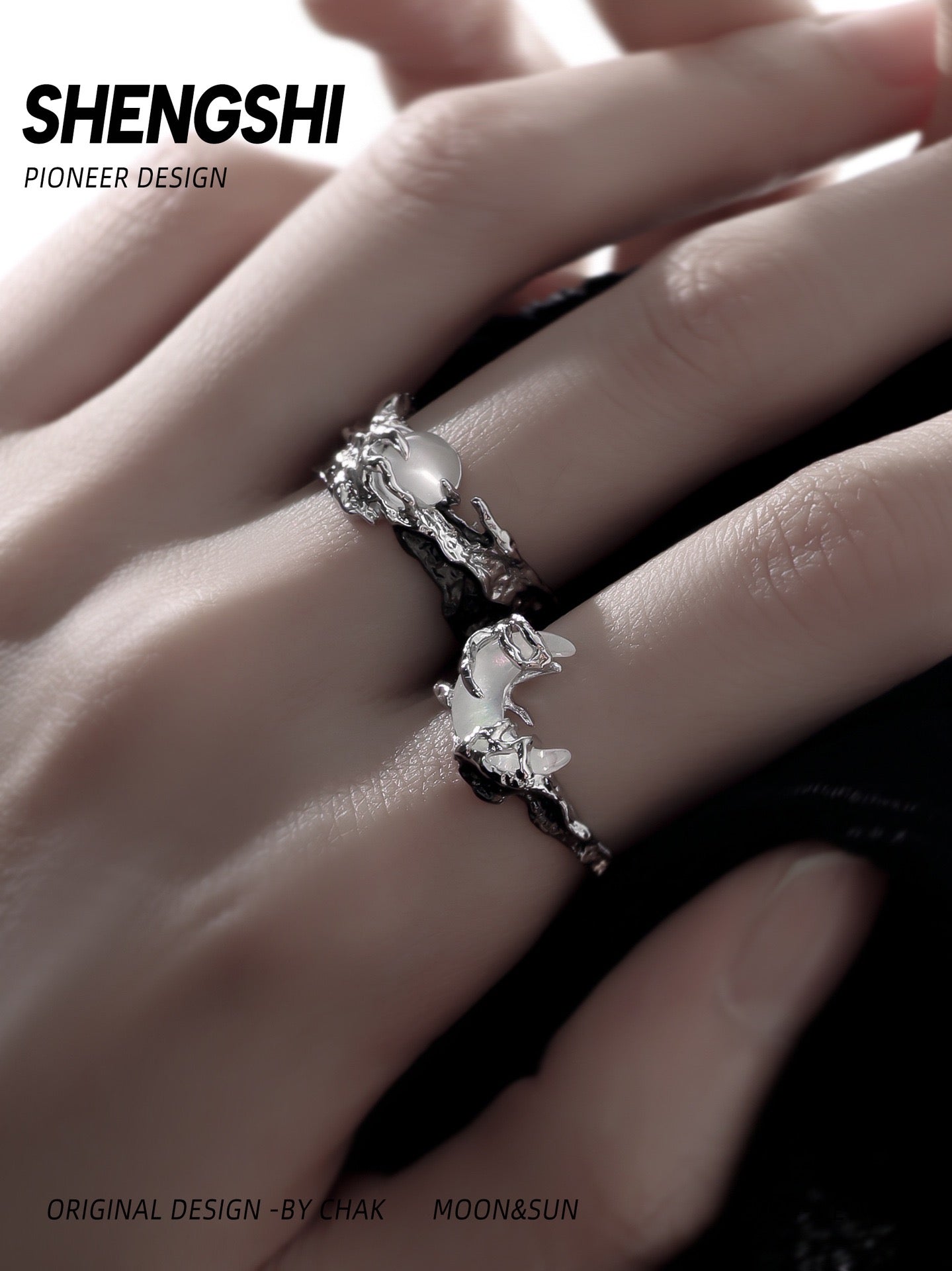 Original 2024 new arrival, unique textured design, sun, moon, and stars, open-end couple's ring. Popular and luxurious ring for women.