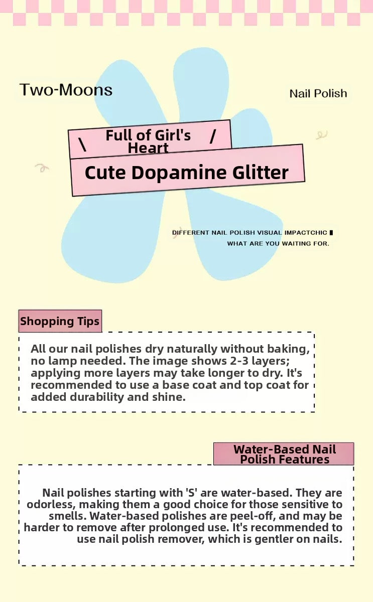 Two-Moons Cute Girlish Glitter Water-Based Nail Polish