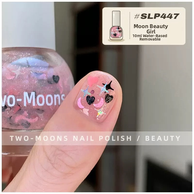 Two-Moons cute girly sequin water-based nail polish no-bake odorless flower nail art moon beauty girl