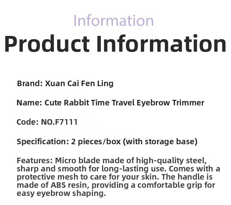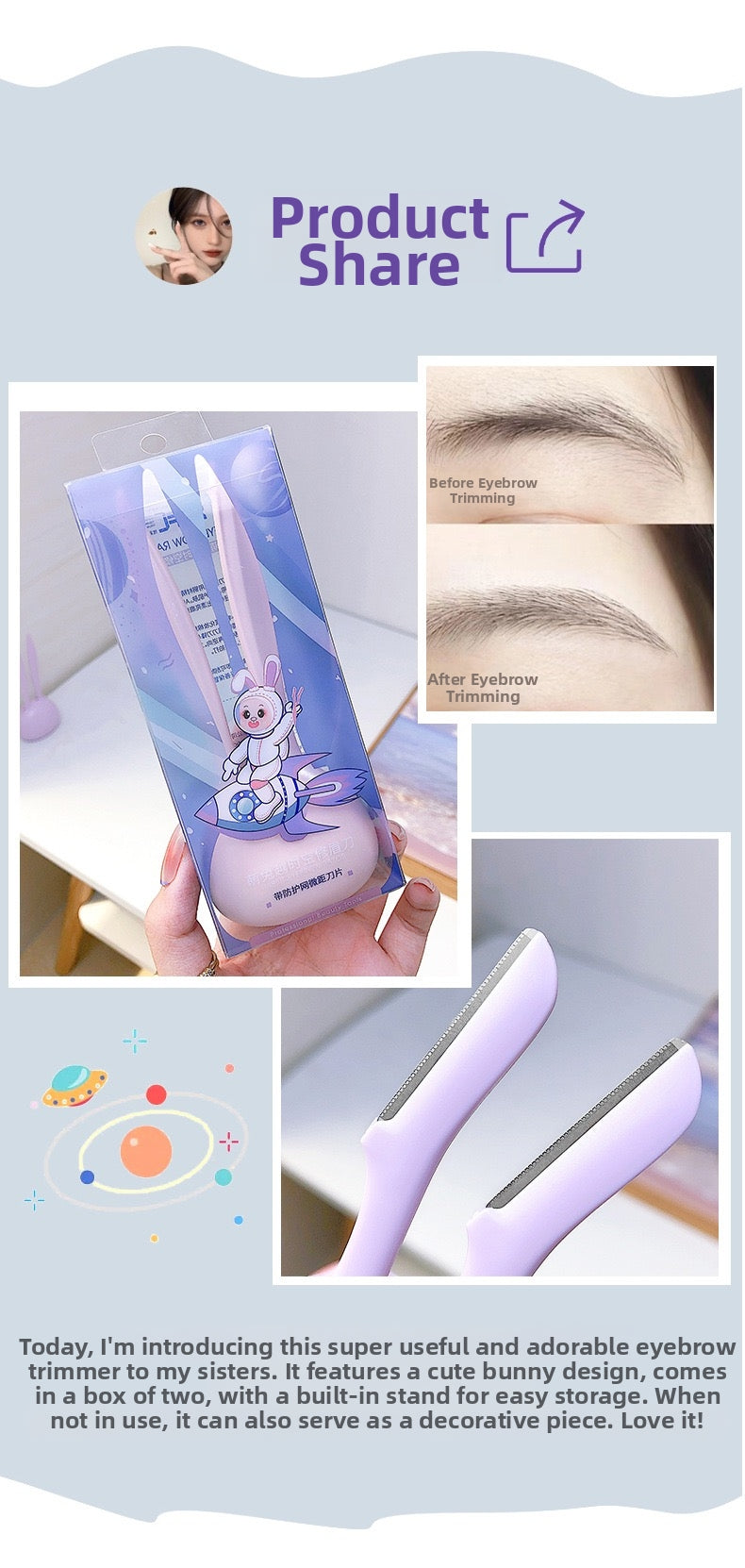Colorful Fenling Cute Rabbit Time-Space Eyebrow Trimmer 2-Pack Beginner Female Safety Mini Eyebrow Razor Beauty Tool