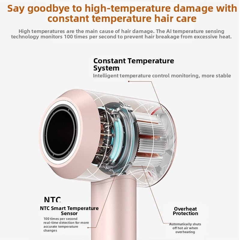 Leafless high-speed hair dryer for hair care, high-power hair dryer for home and commercial use