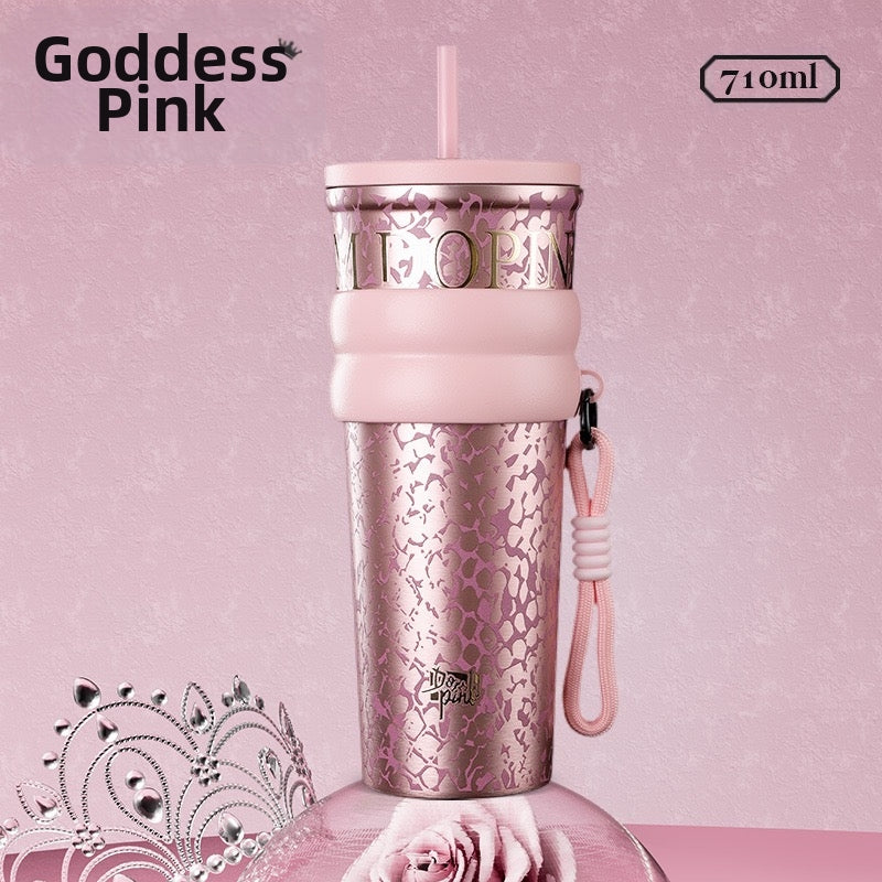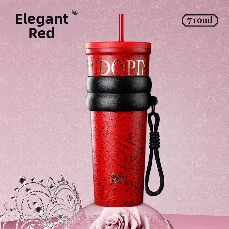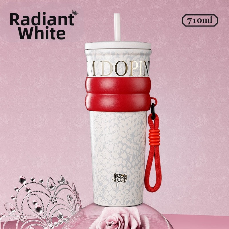 Thickened gift high-value thermos cup 316 stainless steel straw cup female high-end light luxury coffee cup