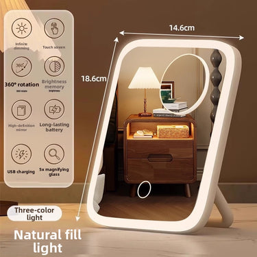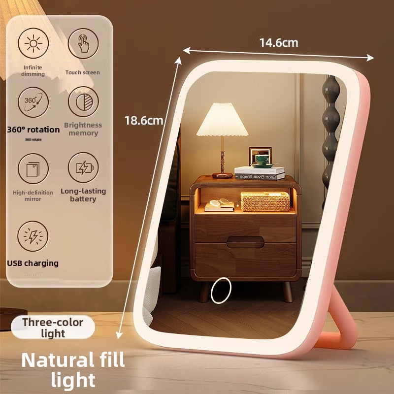 LED lighted dressing table makeup mirror fill light beauty makeup 2025 new ins style dormitory desktop desktop folding mirror
