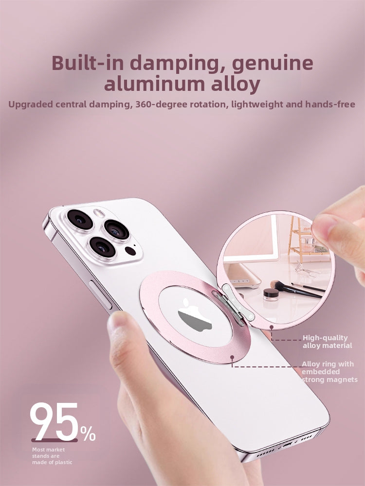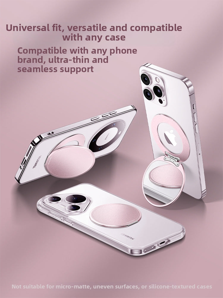 Ultra-thin rotating portable invisible back sticker fixed multi-function magnetic suction mobile phone makeup mirror holder universal fulcrum
