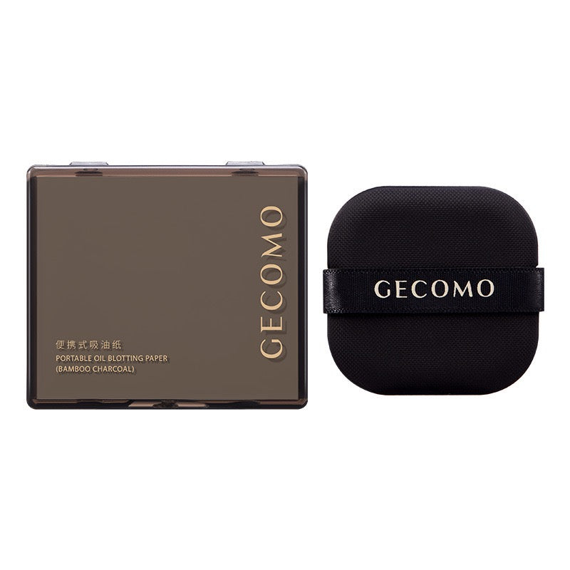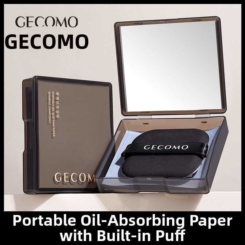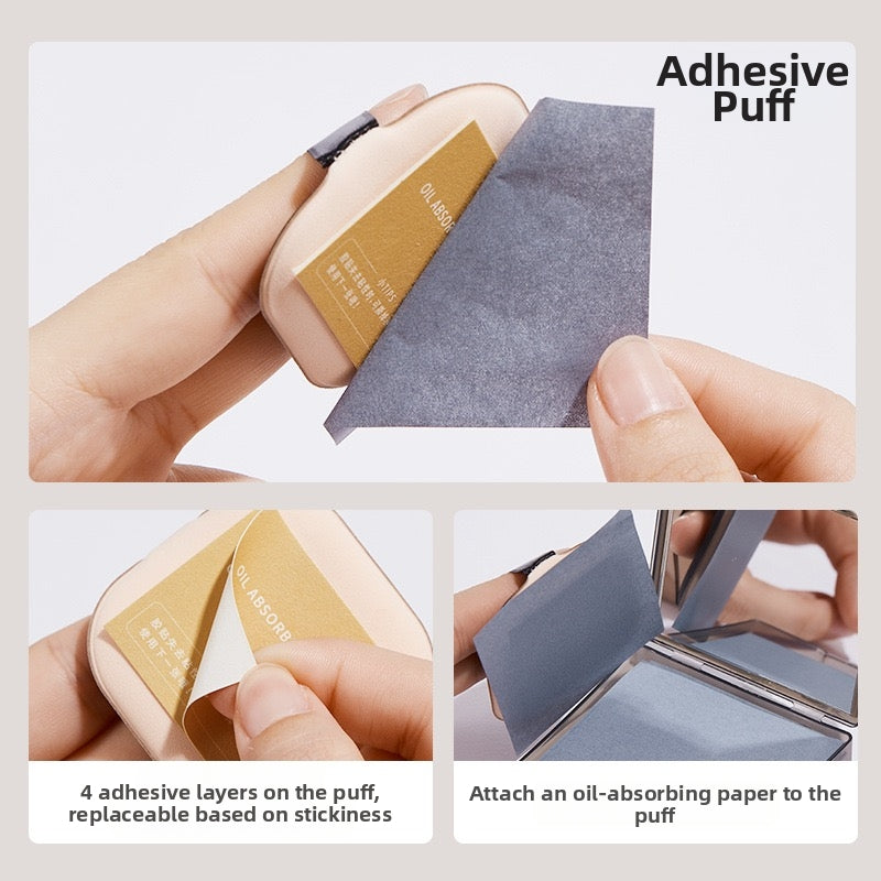 Portable facial oil-absorbing paper with puff and mirror case
