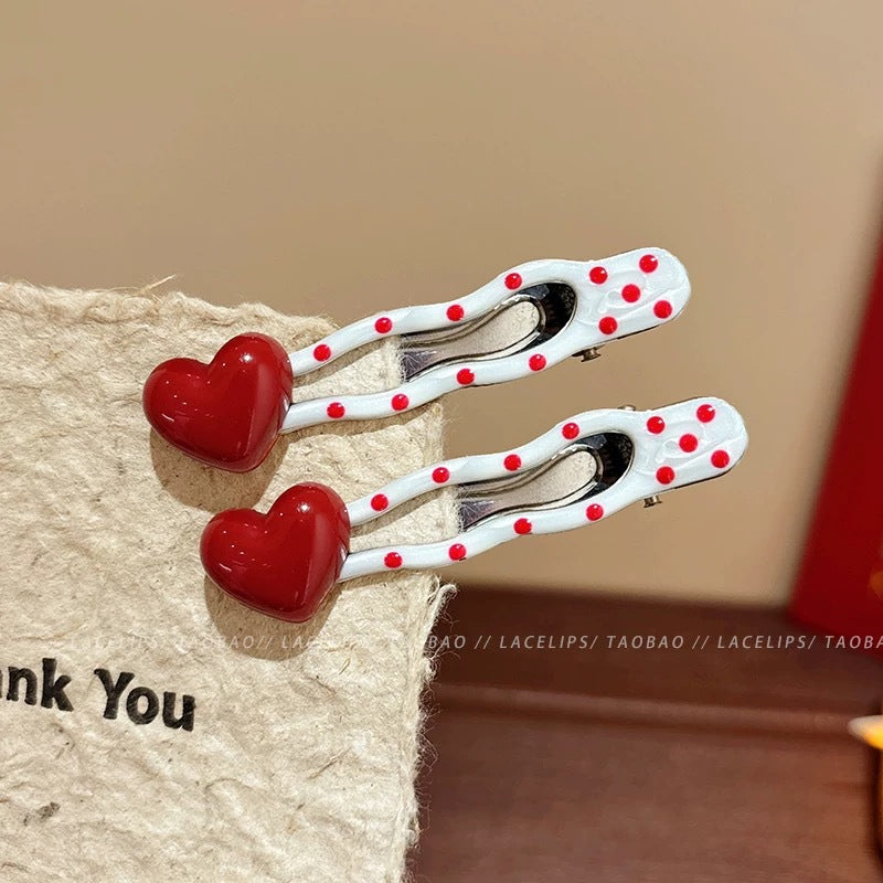 3# Red Heart Polka Dot Hollow Wave Side Clip [One Pair]