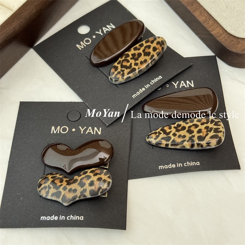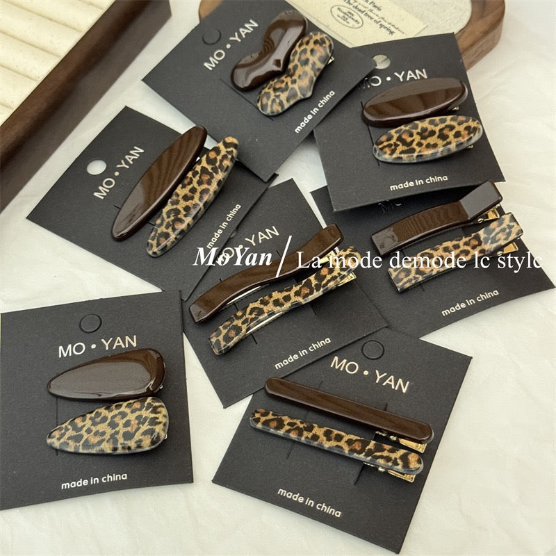 Chocolate brown and leopard print clips, high-end hairpins, sweet and cool hot girl duckbill clips, side bangs clips, broken hairpins