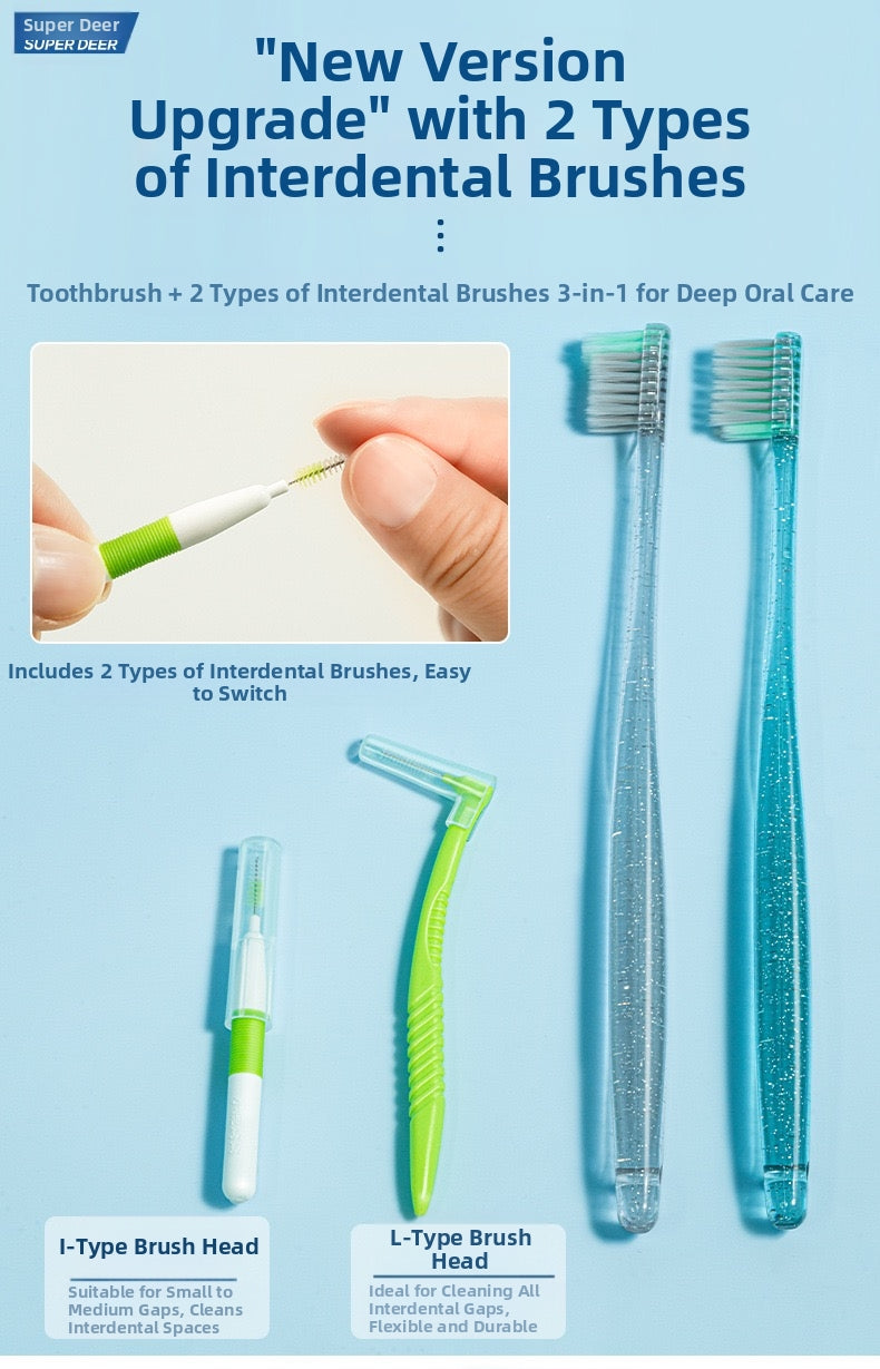 Deer Mom Orthodontic Toothbrush Three-in-One Teeth Braces Braces Cleaner Adult Soft-bristled Toothbrush